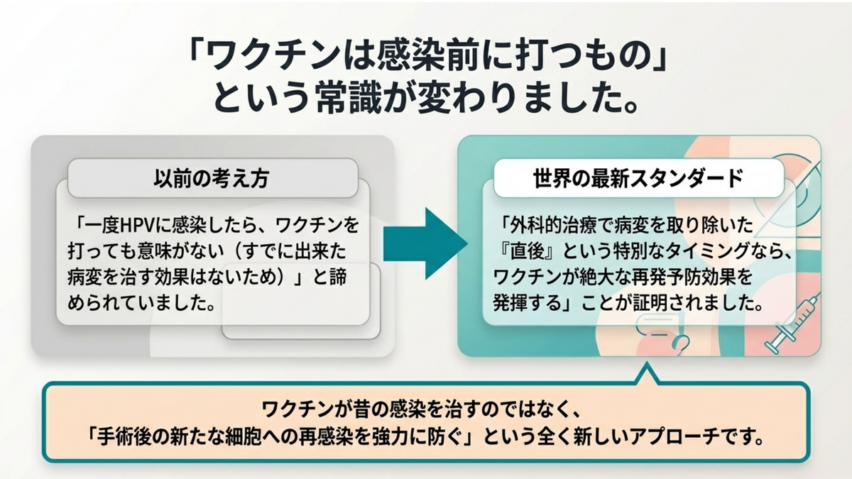 これは、手術による「病変の物理的リセット」と、ワクチンによる「再感染のブロック」を組み合わせた新しい治療戦略です。